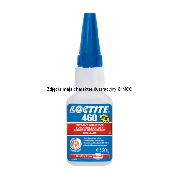 LOCTITE® 460 to przezroczysty, bezbarwny klej na bazie alkoksyetylu o słabym zapachu i niskiej lepkości. Błyskawicznie łączy (w ciągu 5-20 sek.) szeroką gamę materiałów, włącznie z metalami, tworzywami sztucznymi i elastomerami. Szczególnie nadaje się do aplikacji, gdzie potrzebna jest kontrola oparów i dobrze nadaje się do klejenia materiałów porowatych lub chłonnych.