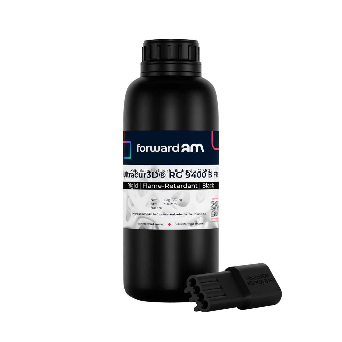 Ultracur3D® RG 9400 B FR to sztywny, ognioodporny materiał, który może być wykorzystywany do produkcji elementów wymagających klasyfikacji UL 94 V-0. Materiał jest wolny od halogenów, a oprócz właściwości ognioodpornych cechuje się bardzo wysoką temperaturą ugięcia (HDT), co czyni go idealnym do wymagających zastosowań w elektronice, niestandardowych przyrządach i uchwytach, a także jako części zamienne w zastosowaniach przemysłowych.